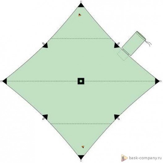 Туристический тент 4х4 – укрытие для стоянки. Коньковый шов расположен по диагонали. В центре тента имеется карман для стойки, которую можно изготовить из подручных материалов.